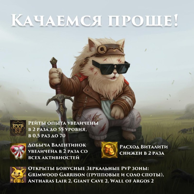 — Бонусные Зеркальные PvP зоны: Antharas Lair 2, Giant Cave 2, Wall of Argos 2